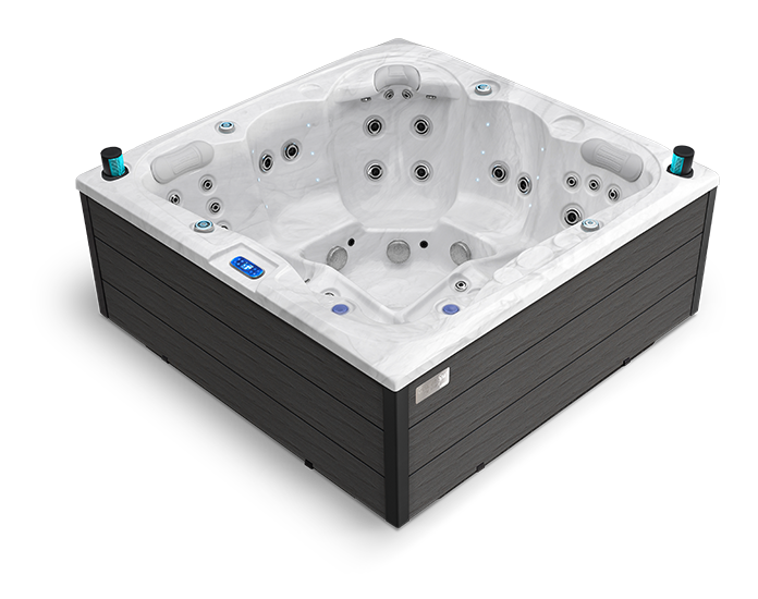 Montreal is a modern hot tub designed for maximum relaxation for up to five people. It features two ergonomically shaped loungers of different depths placed side by side and three comfortable seating positions, providing plenty of space and comfort for shared moments of rest. This new model was created exclusively for Mountfield in collaboration with Canadian SPA International, emphasizing the latest trends in ergonomics and comfort. It is an ideal choice for those looking to combine top quality with modern design.